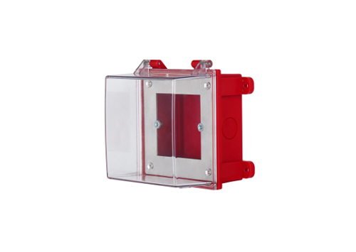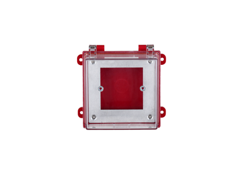 Suya davamlı düymə qutusu; qorunma: IP65; Ölçülər: 129mm = 124m = 87.5 mm; Rəng: qırmızı + şəffaf.