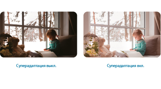Суперадаптация, передовая технология индустрии видеонаблюдения, способна очень точно определить условия наблюдаемой сцены (помещение, улица и другие сценарии с широким динамическим диапазоном) и автоматически подстраивать настройки изображения под нее.