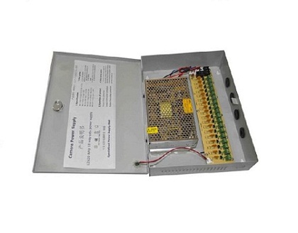 18-канальный блок питания для камер видеонаблюдения; Металлический корпус с замком; Отверстия для крепления к стене. Входное напряж-е: 110-240В, вых: 12/20А; защита: от короткого замыкания, перенапряжения, импульсных помех; Установлены предохранители 0.5A